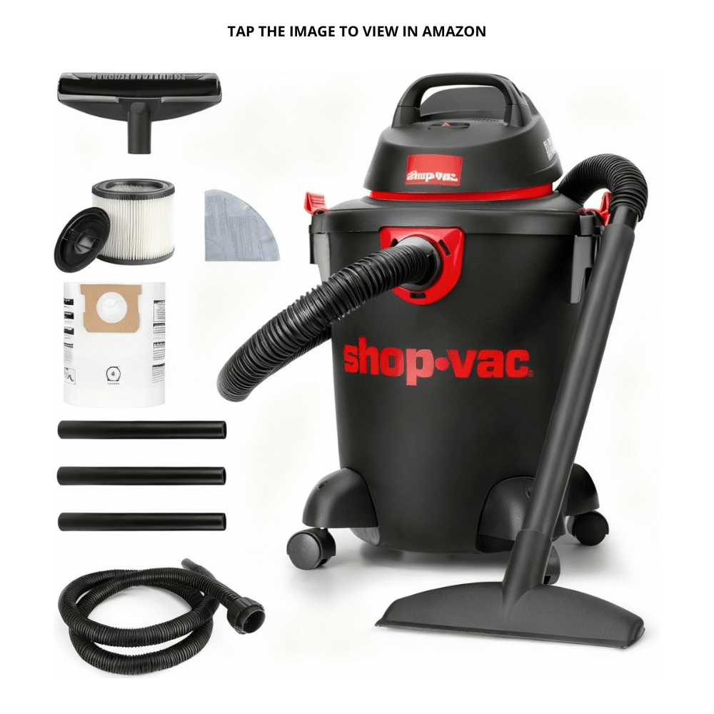 A compact 6-gallon wet/dry shop vacuum for sawdust, debris, and small spills.